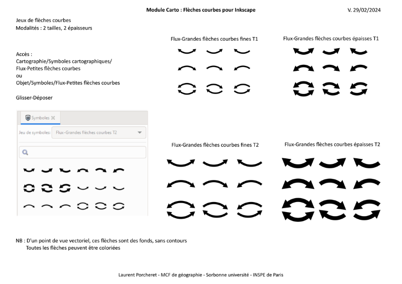 - Un jeu de flèches droites et courbes sur le thème des flux, accessible via le menu : Objets/Symboles