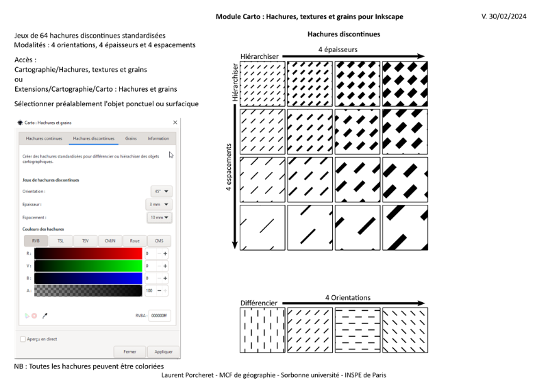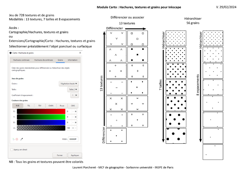 Les hachures, les textures, les grains et les symboles, mis à disposition dans cette extension, correspondent à des variables visuelles qui respectent les règles de la sémiologie graphique.